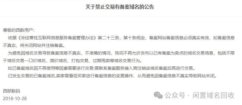 首先,我们要了解的是交易备案域名是违规行为;因为工信部在多年前,已经发布了禁止交易带有备案的域名。所以,大部分域名交易平台都下架了以备案域名为卖点的信息。